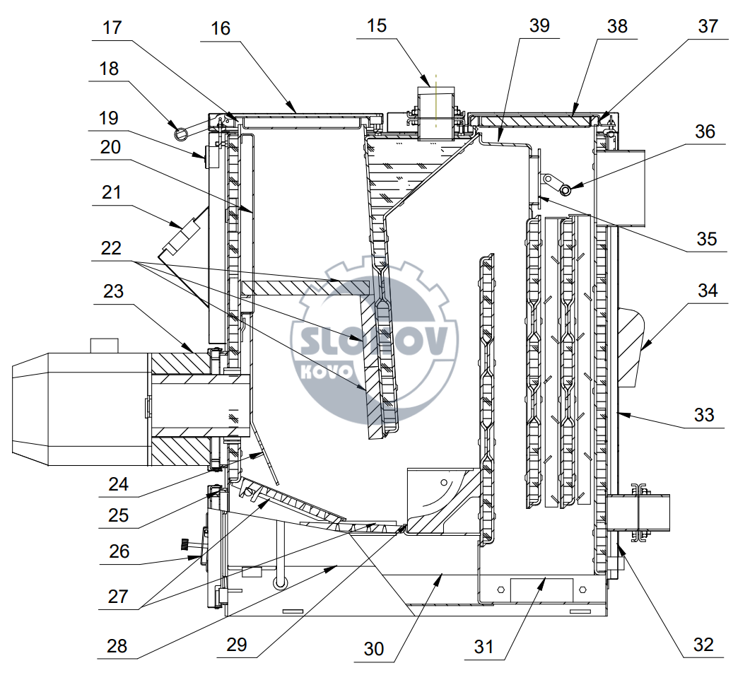 Schématický řez kotlem SL12EKO