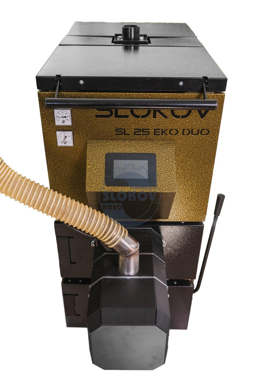 Nová řada automatických kotlů Slokov SL-EKO DUO na dřevní pelety A1 a kusové dříví splňuje emisní třídu 5 a EKODESIGN. Kotle SL-EKO DUO lze provozovat bez přívodu elektrické energie v ručním režimu topení dřevem a na samotížné systémy. Kotle SL-EKO DUO mají nový patentový systém spalovací komory, díky kterému zaručují tyto kotle ekologické spalování s vysokou účinností. Díky patentovanému systému lze topit více palivy, aniž by se musel z kotle vyjmout hořák na spalování pelet.
