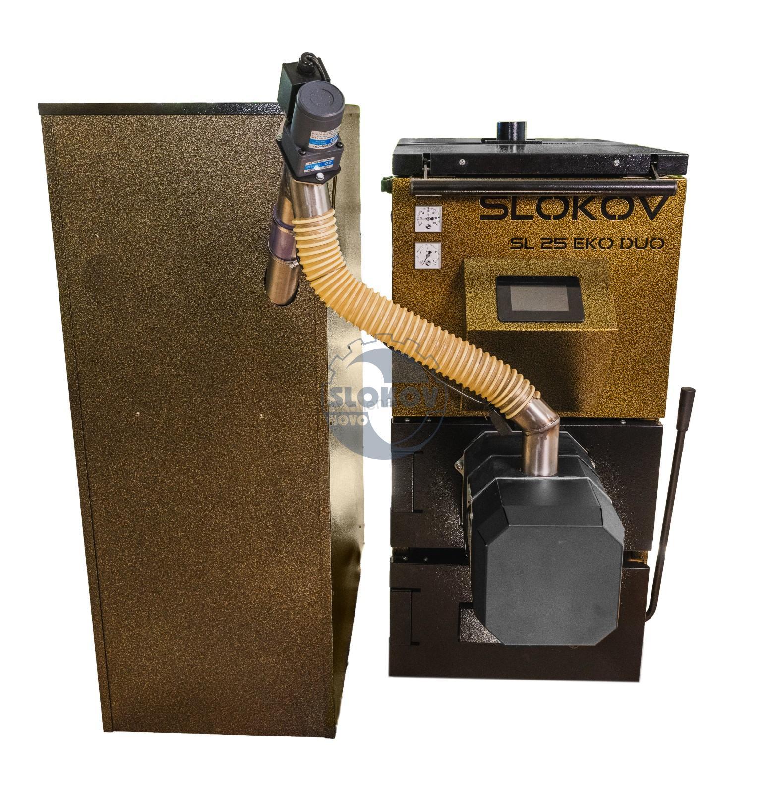 Automatický ocelový teplovodní kotel SLOKOV SL-EKO DUO pro spalování dřevních pelet A1 a suchého kusového dřeva a dřevních briket splňující nejpřísnější ekologická kritéria. Kotel má patentovaný systém spalování pelet, který umožňuje topení kusovým dřevem bez nutnosti vytažení hořáku na pelety. Nový, moderní a jednoduchý kotel, který zajistí teplo vašeho domova!